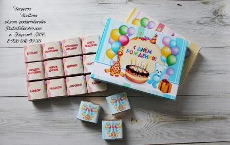 Шокобокс "С днём рождения". Стоимость 350р. Шокобокс "С днём рождения" на 12 конфет конфет Птичье молоко. Все надписи можно заменить, подписать имя ребёнка.